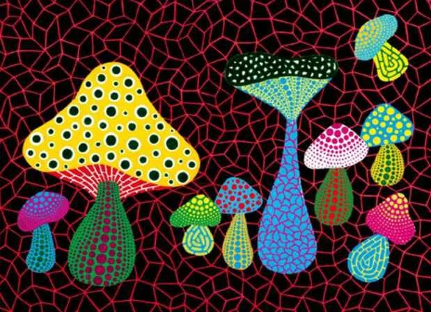 Yayoi Kusama "Mushrooms" (2005), acrylic on canvas.