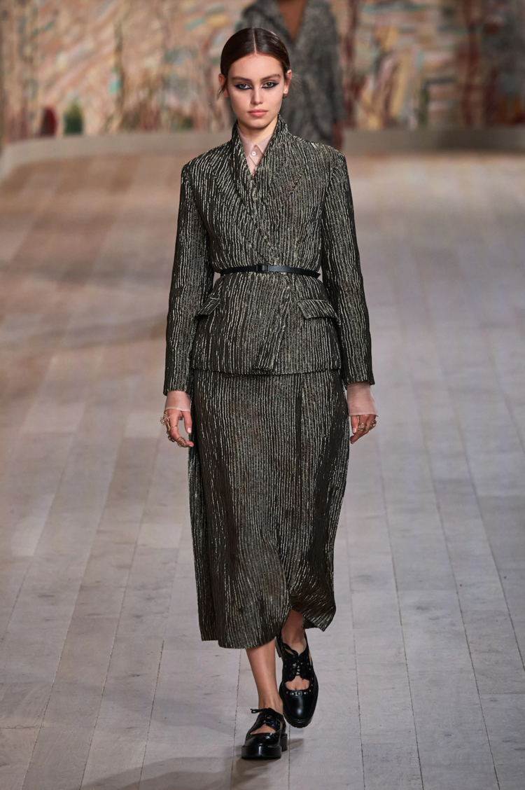They say Dior is fancy Zara. I kind of agree, but would take this shimmery outfit that reminds me of the 90’s and Romeo Gigli (or Armani, no?!). To wear with heel boots and a white t-shirt to celebrate something in pre-holiday December. Love the idea of the austere twinkle. // photo: vogue.com